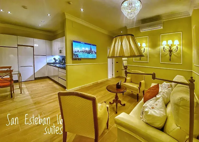 Suites San Esteban 16 Ducal is a 10-minute ride from Puente de la Barqueta and boasts spa facilities such as a hot tub. The apartment is located in the Old town district, a 10-minute ride from United States Pavilion.